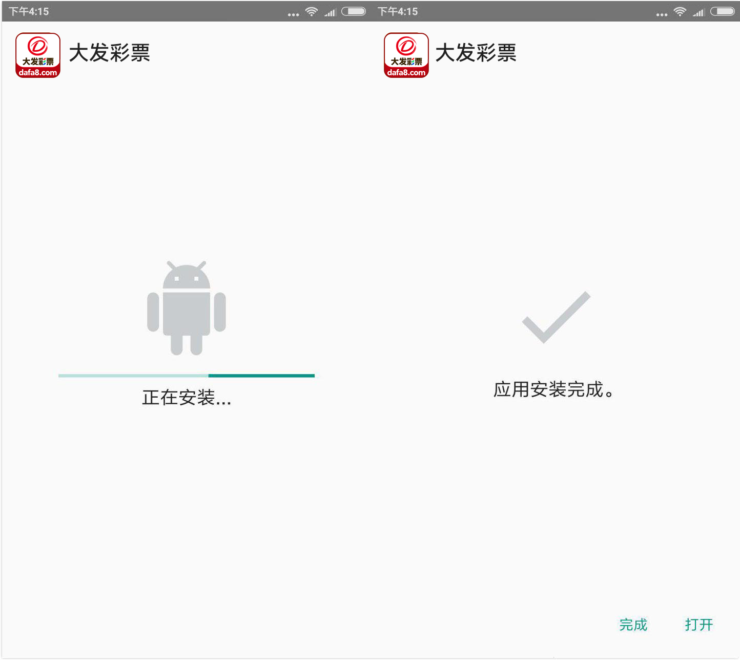 3. 等待安装完成之后, 即可正常打开"大发彩票"APP
