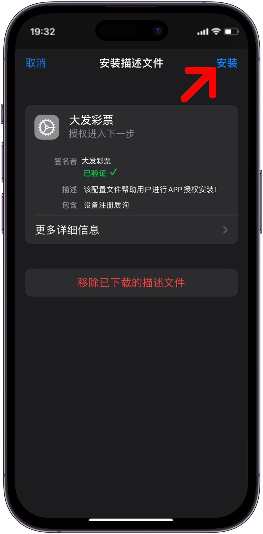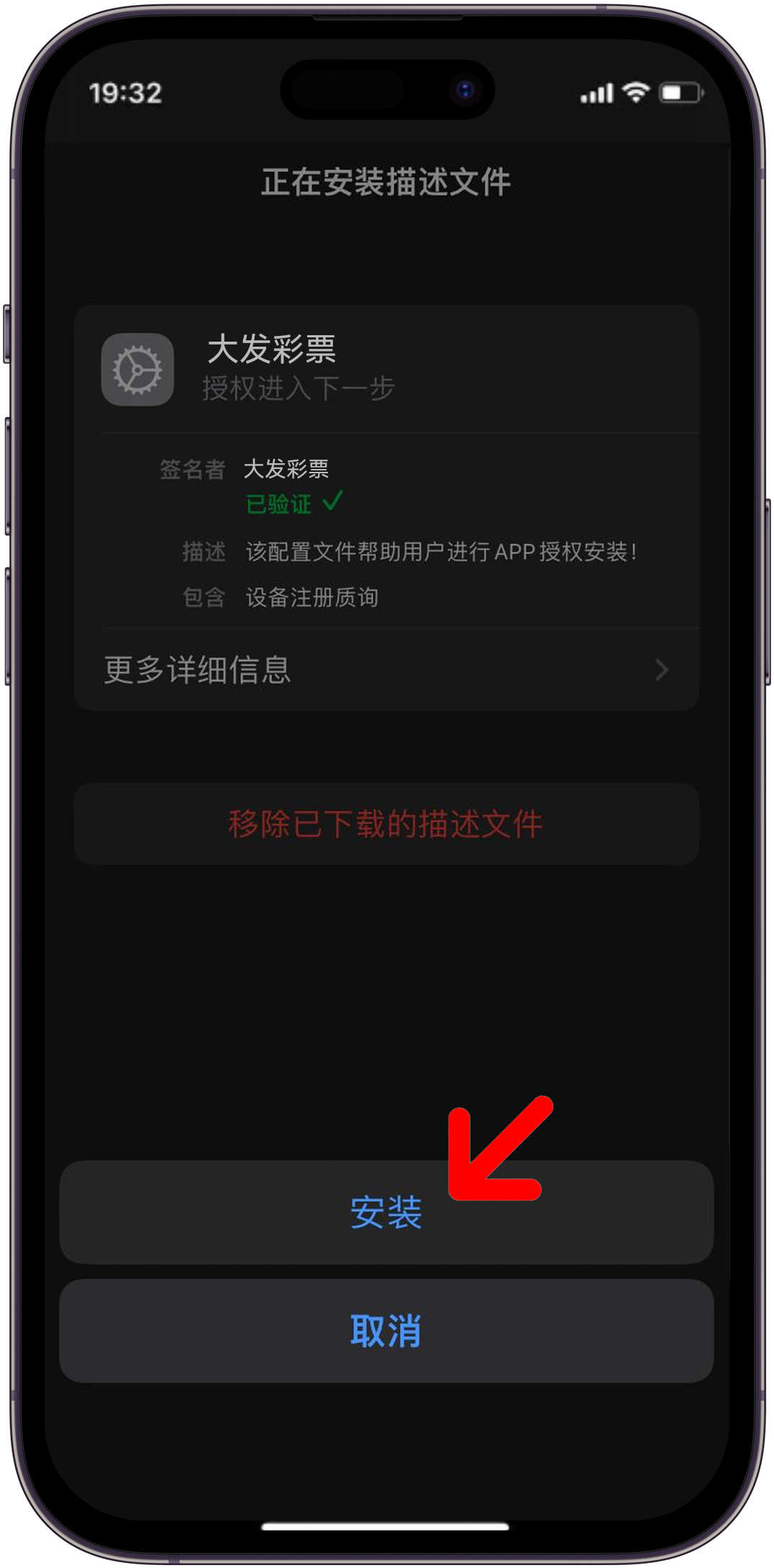 9. 点击弹窗上的"安装", 等待安装完成之后, 返回桌面, 即可正常打开"大发彩票"APP